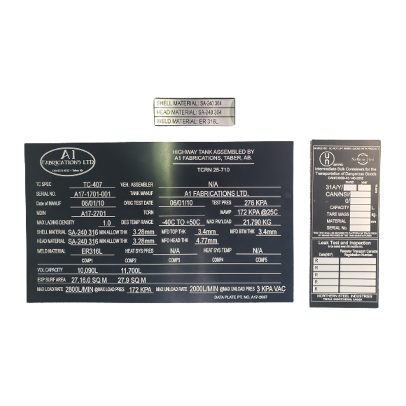 Using stainless steel or aluminum, we can create durable data plates in almost any size and with a variety of text.