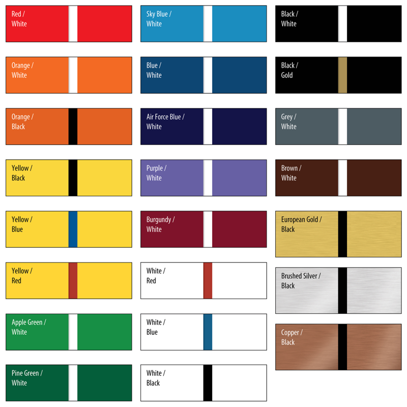 Tape backing is included. See images for plastic colour options (please note that the first colour listed is the main colour of the sign, while the second is the colour of the engraving).