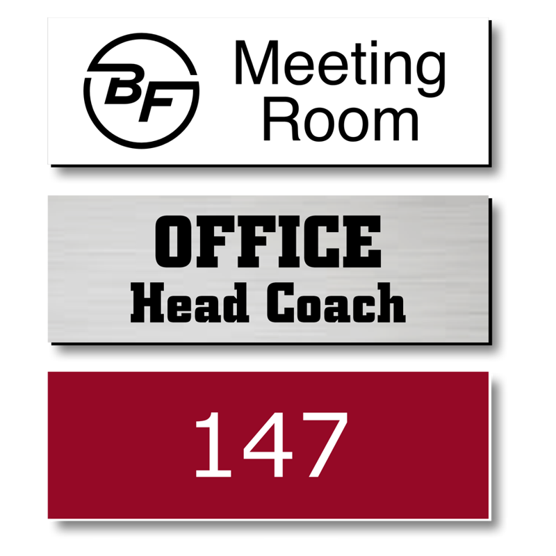 Tape backing is included. See images for plastic colour options (please note that the first colour listed is the main colour of the sign, while the second is the colour of the engraving).