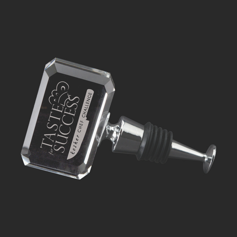 The Annapolis wine stopper is rectangular in shape with faceted edges, crafted from sparkling optic crystal. Perfect for recognizing the achievements of a friend, family member, or outstanding employee!