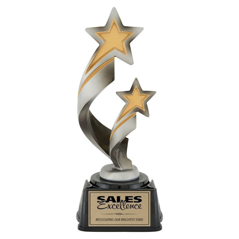 This resin award features a pair of rising stars swirling and twisting upwards to symbolize victory.