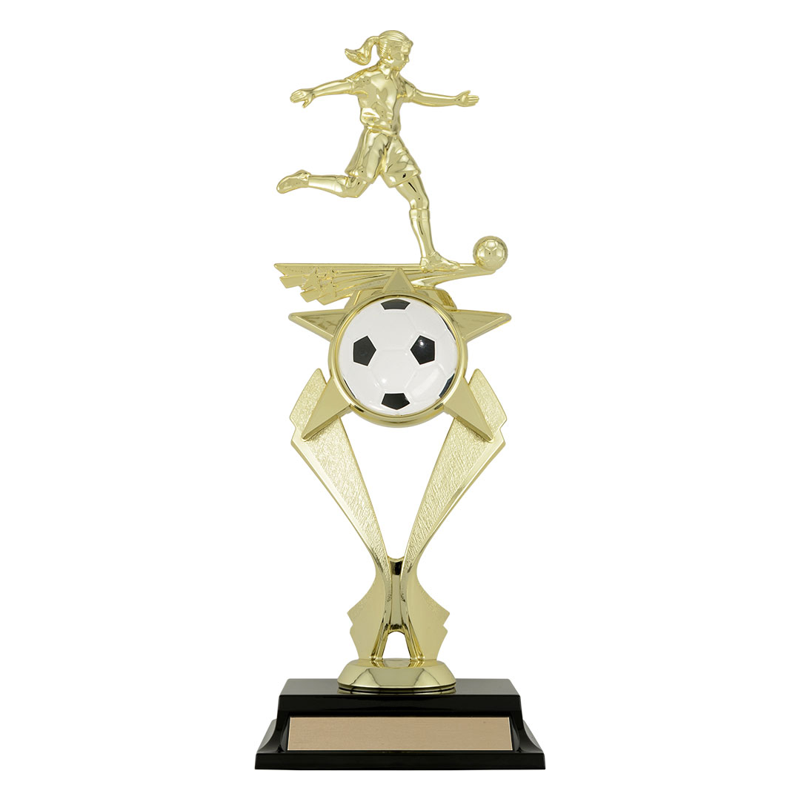 The Ascent series features an angular pedestal with a figure and a coloured soccer accent piece on top. Available with or without a figure on top.