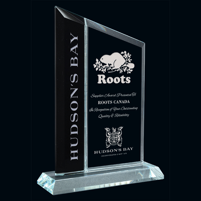 Crafted from two panels of black and clear glass, the Berkshire award features an angular rectangle shape with a striking top peak, and a matching glass base, perfect for celebrating an employee, athlete, student, or anyone else you wish to honour! Available in four sizes.
