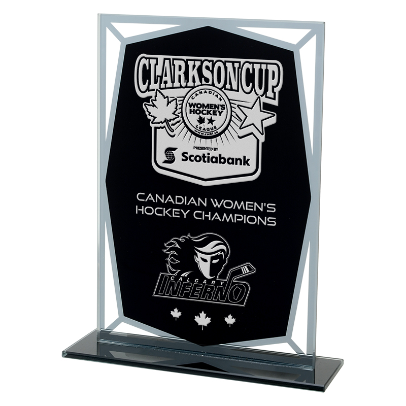 The Cape Spear award features a thin black glass pane with clear details and mirrored decorations, along with a mirrored black glass base, creating a light yet stylish monument to whatever achievement you wish to celebrate! Available in three sizes.