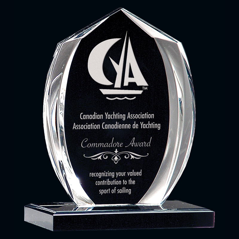 With rounded, beveled edges, a pointed peak, black details, and a matching base, the Spinnaker acrylic is the perfect award to honour any significant achievement!