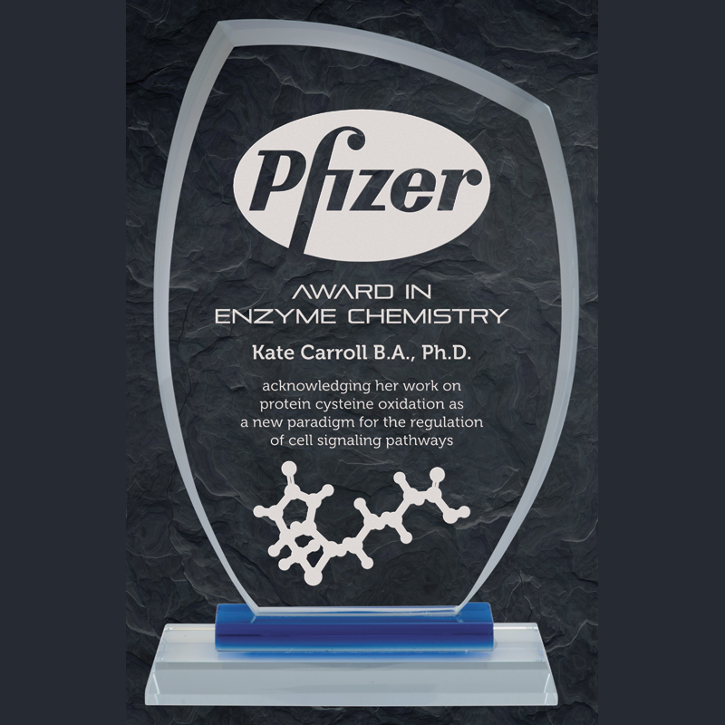 Named for their layered base, the Blue Glass series features an angled clear glass base, topped with more blue glass. The St Thomas also features a curving, dynamic glass panel to show off your custom inscription, all edged with frosted bevel. Available in three sizes.