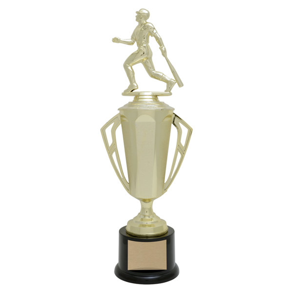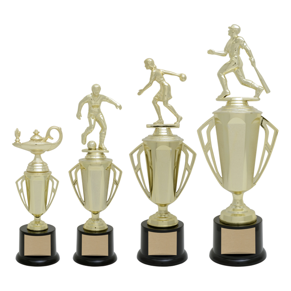 Available in four sizes, the Bravo cup features a simple cup with angular handles and a pedestal with layered details. Choose from our wide selection of trophy toppers for the perfect finishing touch!