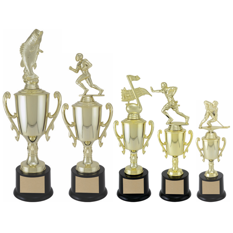 Available in five sizes, the Chalice cup features a simple cup with ornate handles and a pedestal with faceted details. Choose from our wide selection of trophy toppers for the perfect finishing touch!
