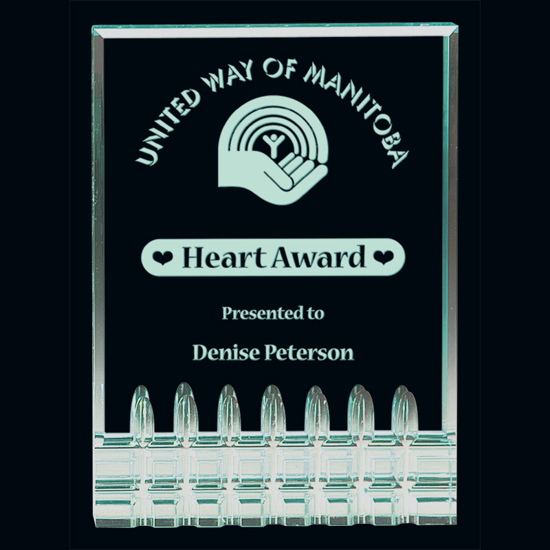 Crafted from shining green-toned acrylic, the Crosshatch award features a free-standing rectangular shape with indented crosshatching decoration cut into the bottom. Perfect for honouring a special accomplishment!