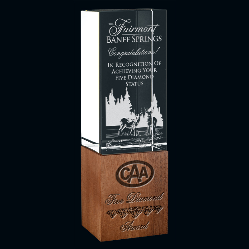 The Inspire award features an elegant block shape, with a smoothly integrated wooden base, perfect for celebrating any major milestone!