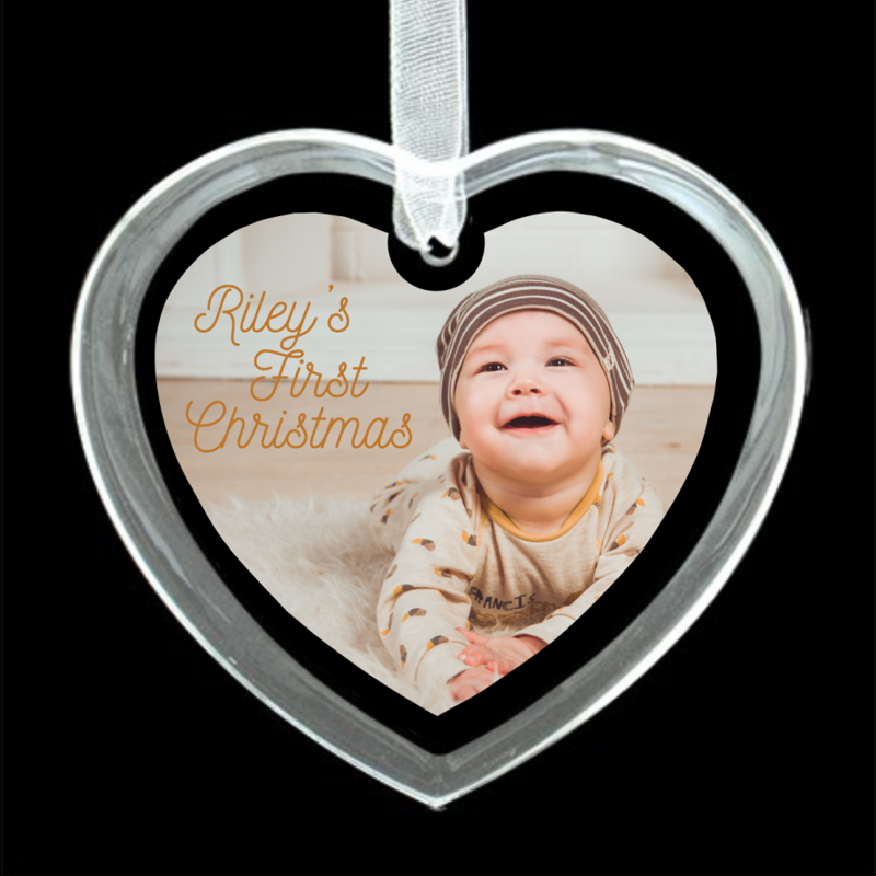 Made from sparkling crystal, this heart-shaped ornament features beveled edges and a shimmering ribbon hanger, and can be colour printed with almost anything your imagination can dream up! Perfect for family or company milestones.
