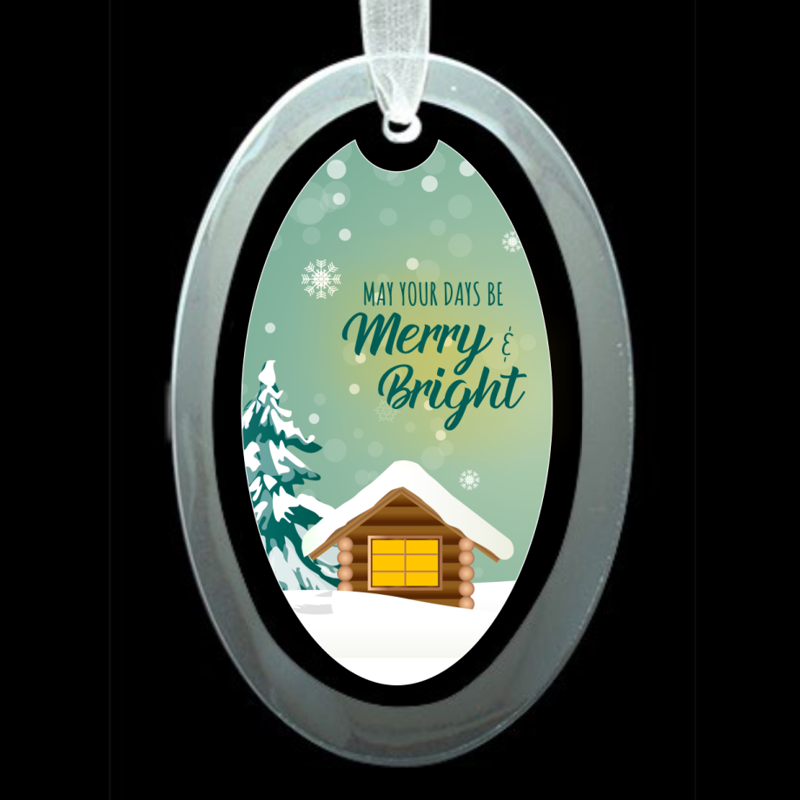 Made from sparkling crystal, this oval-shaped ornament features beveled edges and a shimmering ribbon hanger, and can be colour printed with almost anything your imagination can dream up! Perfect for family or company milestones.