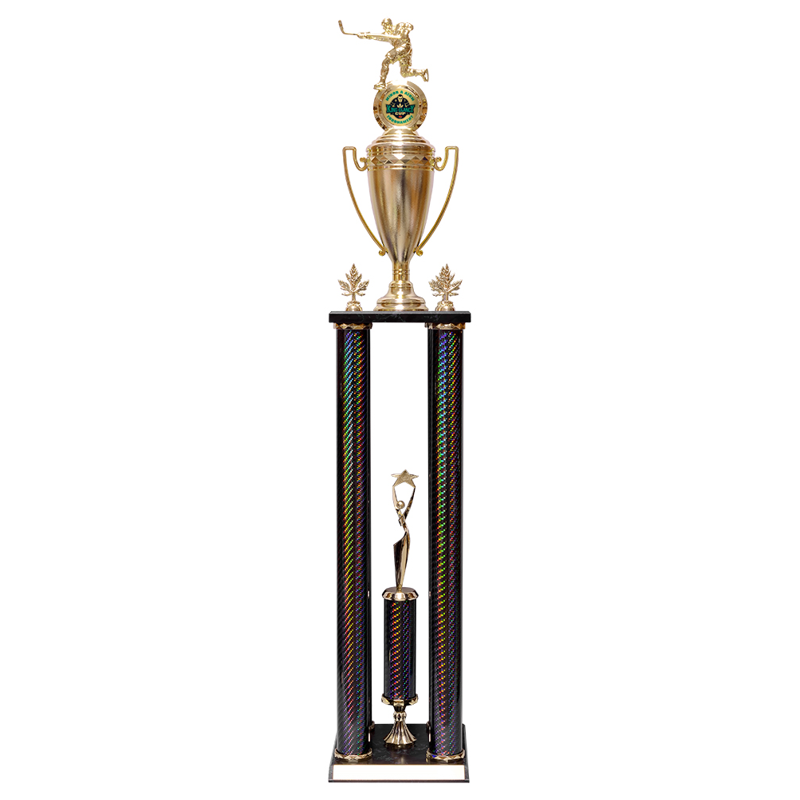 Available in 3 different sizes, with 30+ column colours to choose from, this classic trophy can be customized for nearly any theme or event! We have many top and side trim options, as well as two different base finishes, with a column or decoration in each corner, as well as a central showpiece column.