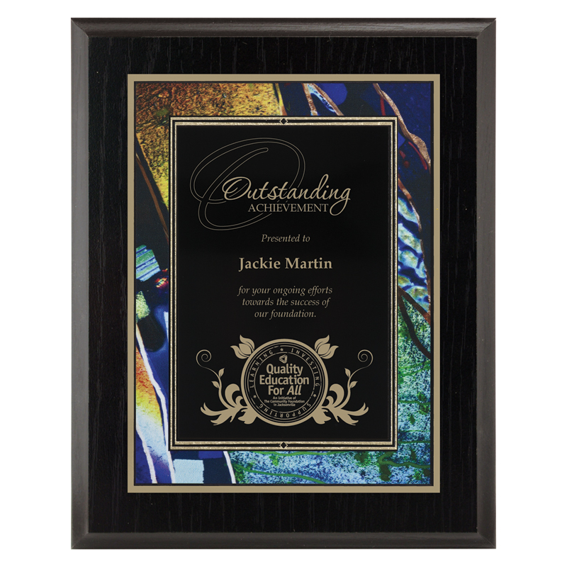 The Focus plaque features a colour printed brass plate with your choice of art, used as a frame to highlight your custom inscription.
