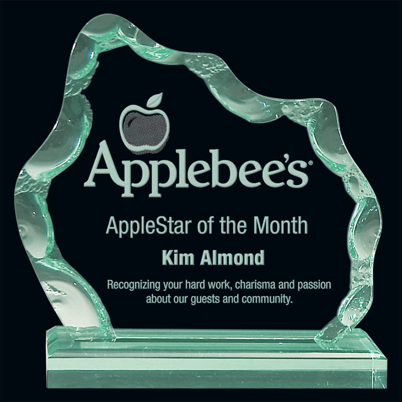 Crafted from shining green-toned acrylic, the Iceberg award features a curving shape with chipped edges, along with a matching base. Perfect for honouring a special accomplishment!