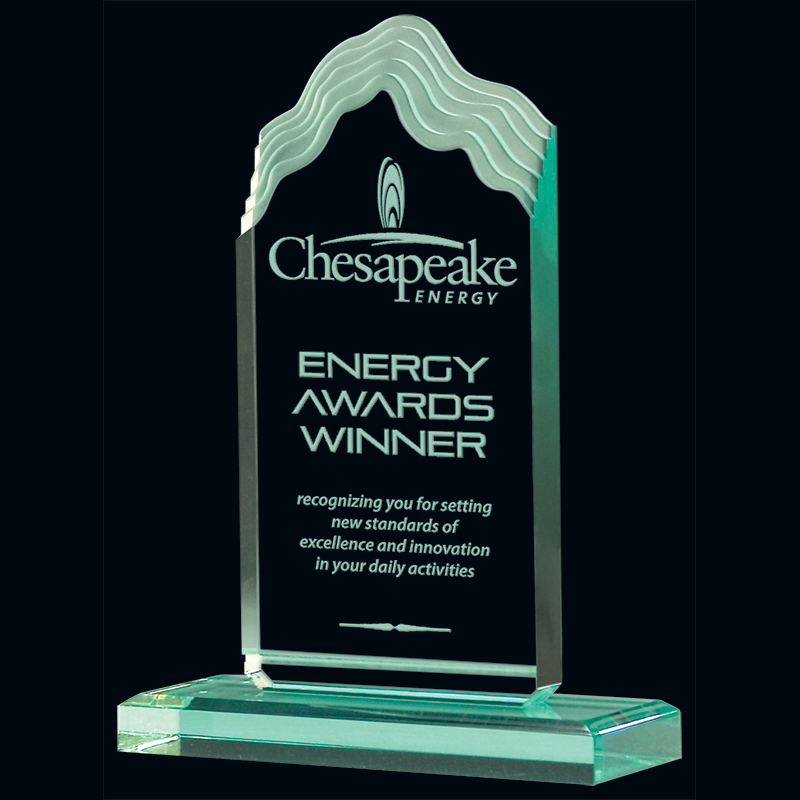 Crafted from shining green-toned acrylic, the Wave award features a rectangular shape with a curved, multi-layer top in a frosted finish, along with a matching base. Perfect for honouring a special accomplishment!