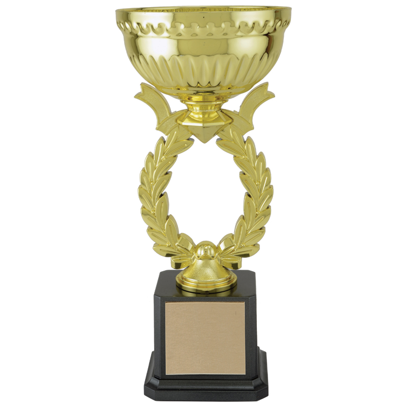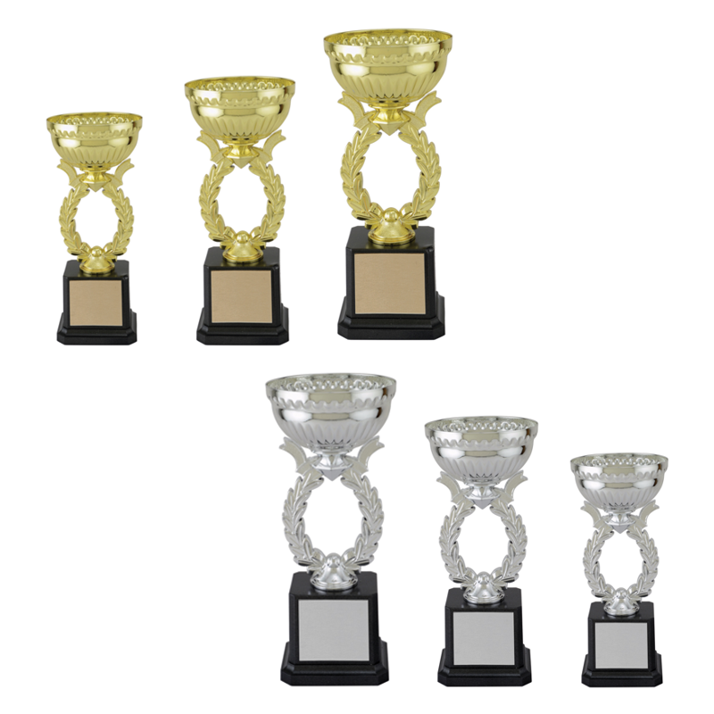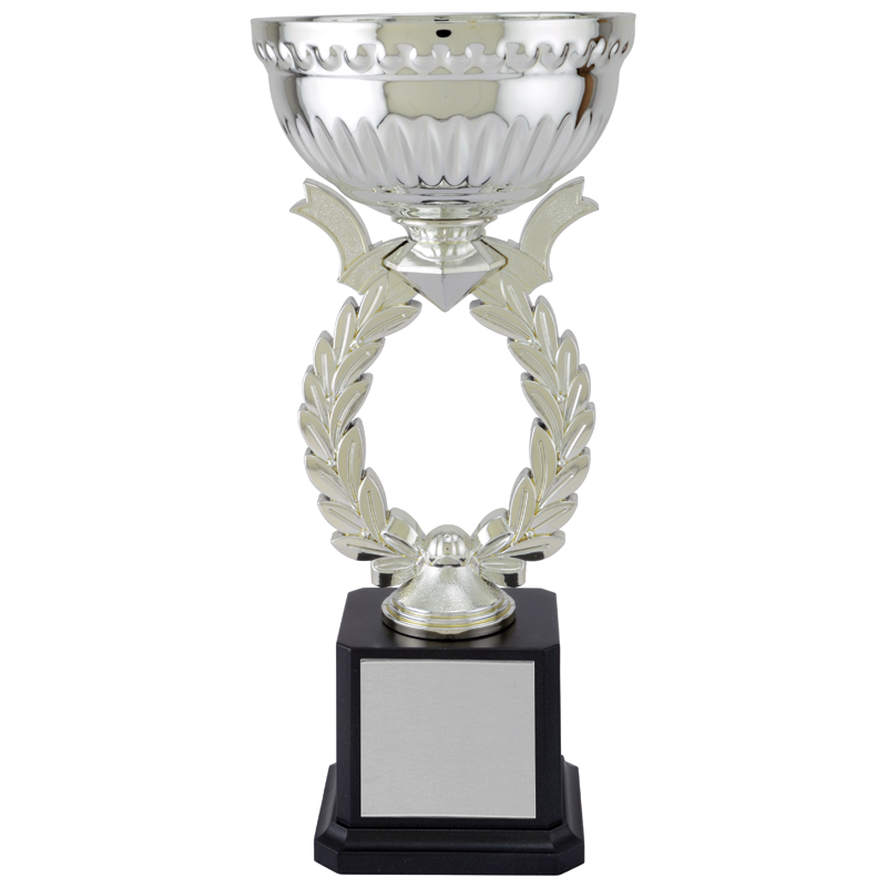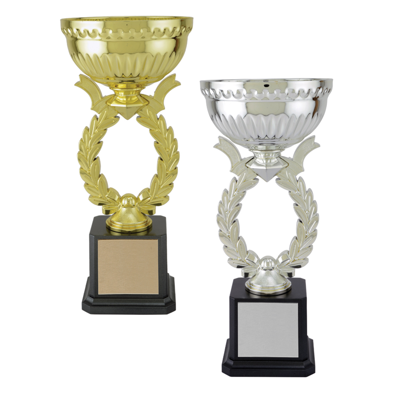 Available in five sizes and two colours, the Wreath cup features a wreath-like, oval pedestal with victorious laurel leaves. The bowl topper is plated metal with a symmetrical indented design.