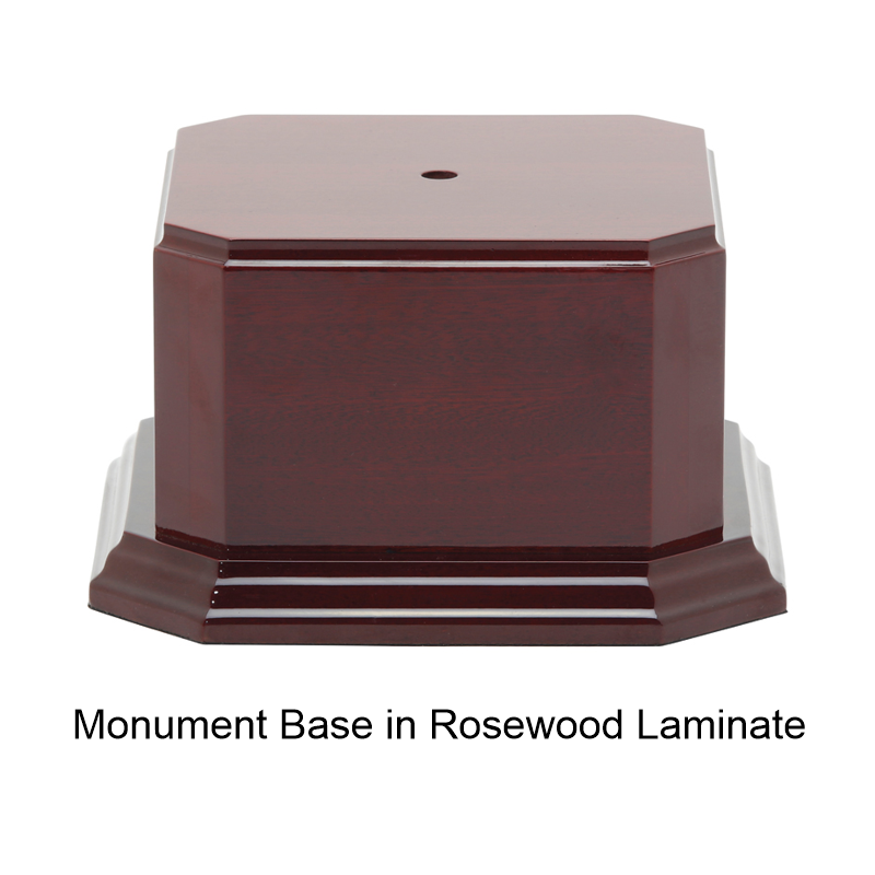 Available in three sizes, this classic metal jug features an open top, an elegantly smooth finish, and an ornate handle, affixed to our Monument Base, an elegant wood laminate base available in two finishes.