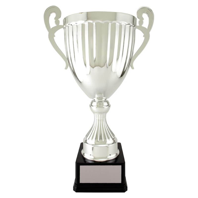 Available in six sizes and two finishes, the Wakefield Cup features an elongated cup with indented vertical decoration and vintage-style curving handles, on a simply elegant plastic pedestal.