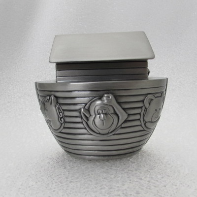 Perfect for the new little one in your life, this pewter-coloured bank is inspired by the popular children's story Noah's Ark, and features fun animal motifs -- including an elephant, giraffe, bear, monkey, horse, dog and more!