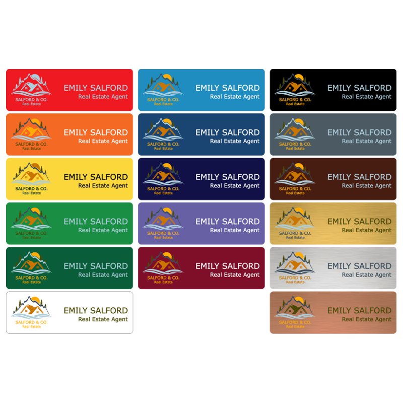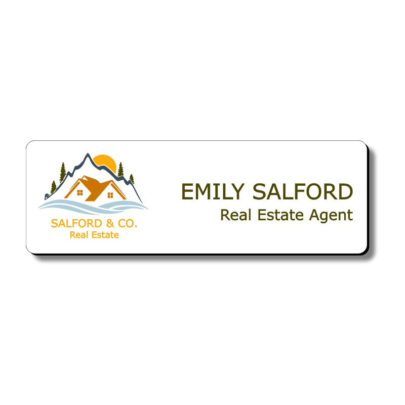 Our standard 1x3" name badges are nearly infinitely customizable! They are available with full colour digital printing on a variety of plastic options, and can include names, titles, pronouns, logos, and more.