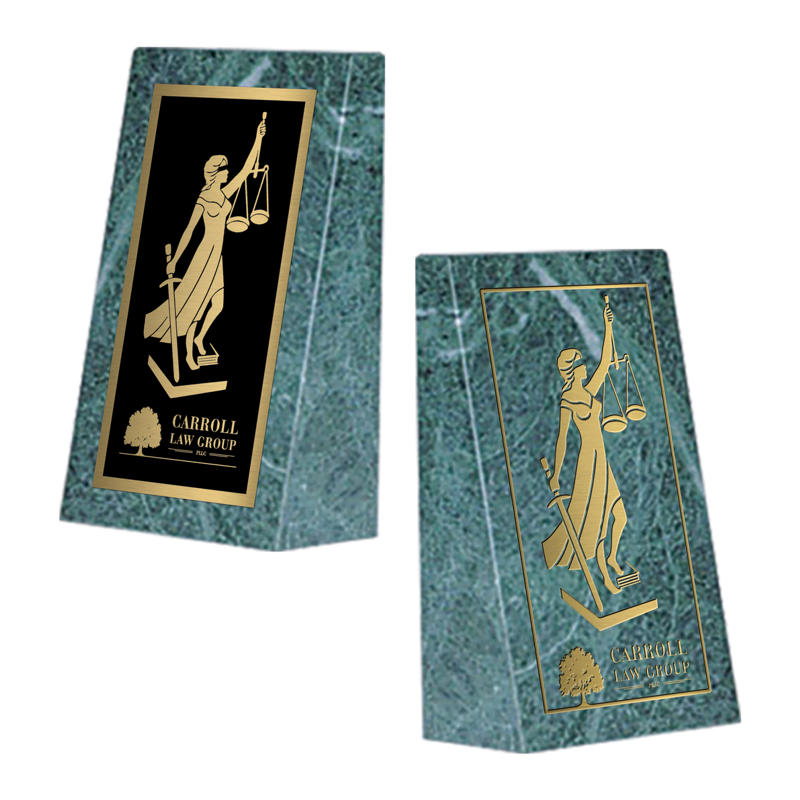 Perfect for displaying a logo, slogan, or professional achievement, this marble wedge adds an elegant touch to any office space.