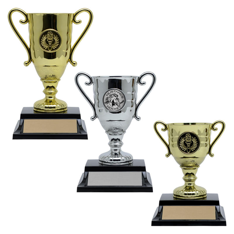 Available in three sizes and two colours, the Hugo features a classic cup shape in sizes perfect for individual awards, and a place to feature your custom logo!
