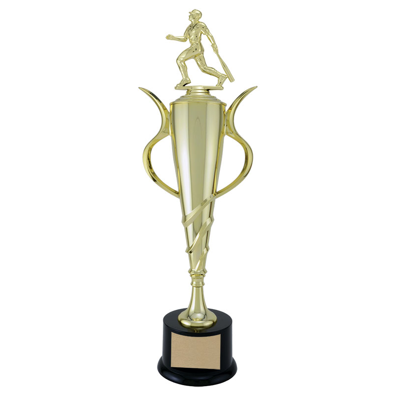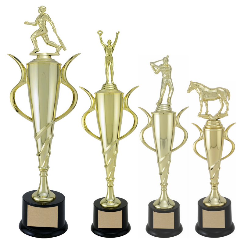 Available in 4 sizes, the Spiral cup is a tall, narrow cup with a graphic swirl motif at its base and elegantly curving handles. Choose from our wide selection of trophy toppers for the perfect finishing touch.