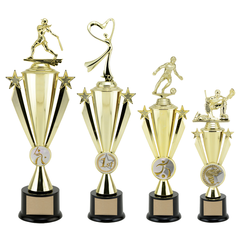 Available in four sizes, the Star Ribbon cup features a tall, angular cup with star-trimmed handles and space for your custom logo! Choose from our wide selection of trophy toppers for the perfect finishing touch.