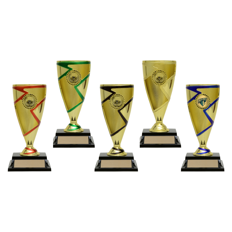 Available in three sizes and five colours, the Zorro features a slim, elongated cup shape in sizes perfect for individual awards, and a place to feature your custom logo!
