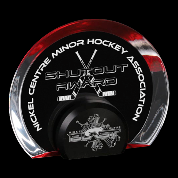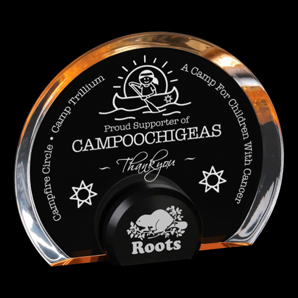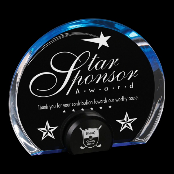 This free-standing award is molded from solid acrylic and features faceted edges, with a coloured base facet to create a striking reflective effect.