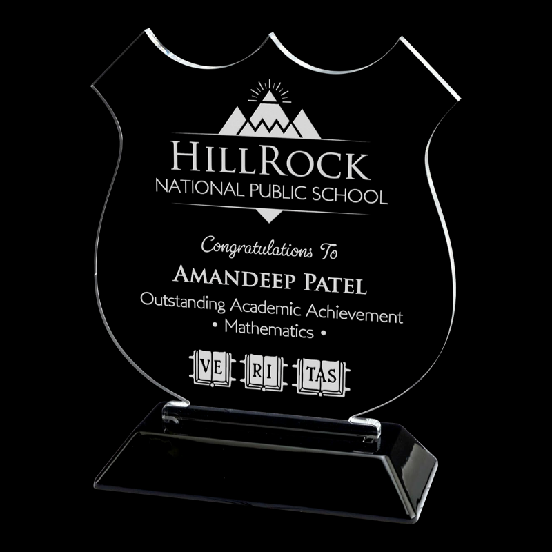 These budget-friendly awards come in a variety of shapes, cut from clear, shining acrylic. They snap in easily to a black base, making them a light and durable alternative to glass awards. Perfect for celebrating any accomplishment!