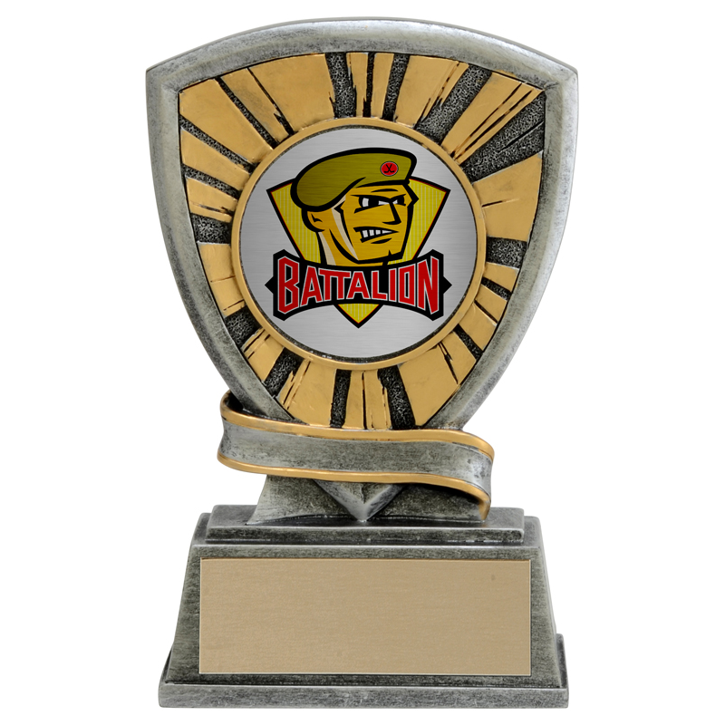 Available in 3 different sizes, the Starburst resin features a shield overlaid with a bursting lines, showcasing your own custom logo!
