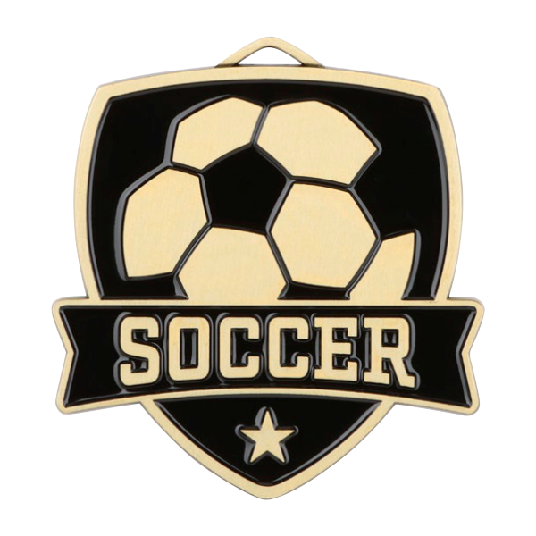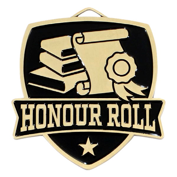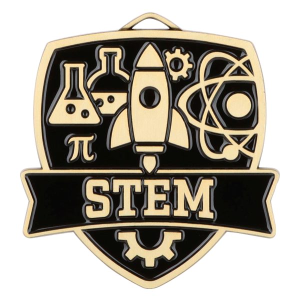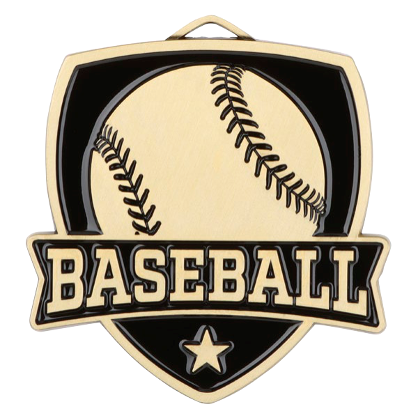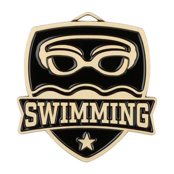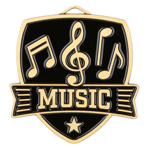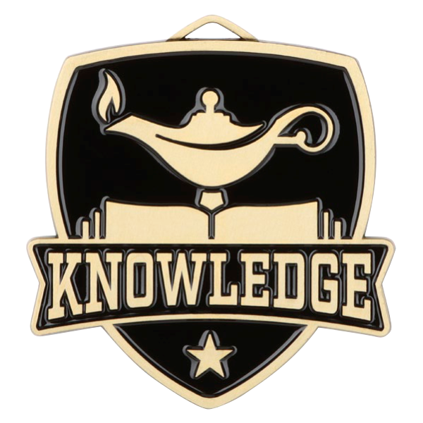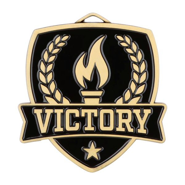 The Varsity medal series features a ribbon accent, bold text, and a shiny black enamel shield bordering the design of your choice. Choose from 15 different designs and 37 ribbon colours.